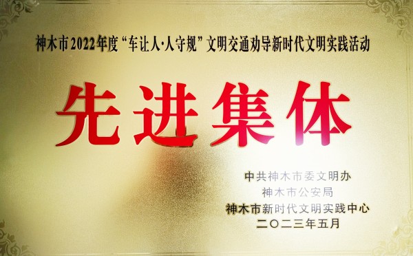 喜报!神木煤化工电化真人华球体育官网喜获神木市2022年度文明交通劝导先进单位