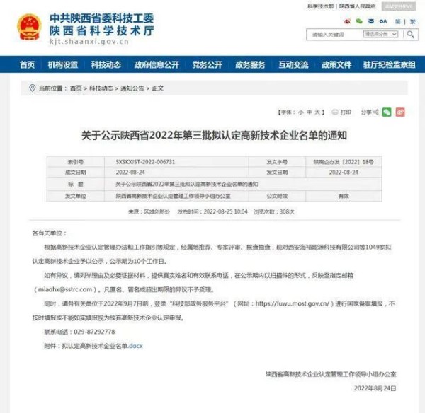 神木煤化工电化真人华球体育官网获得陕西省2022年高新技术企业认定