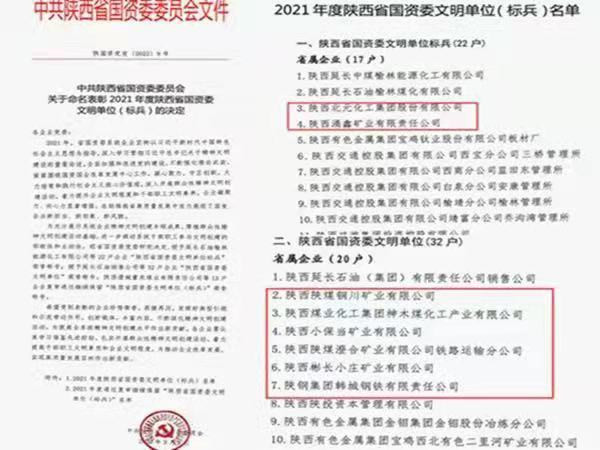 神木煤化工真人华球体育官网荣获“2021年度陕西省国有企业文明单位”称号
