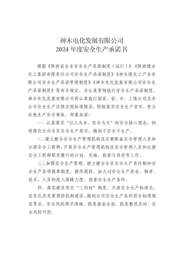神木电化发展有限真人华球体育官网2024年度安全生产承诺书