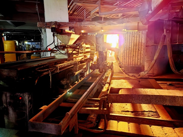 写风机在轰鸣,出炉口火花飞溅,电石流奔腾而出