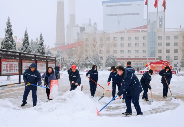 写全体员工积极行动,自发组织并参与扫雪除冰劳动