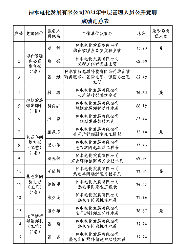 电化真人华球体育官网2024年中层管理人员公开竞聘结果公告