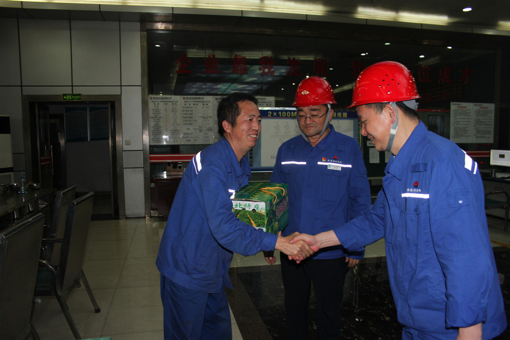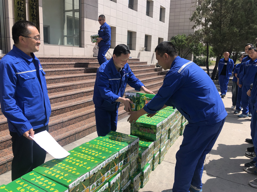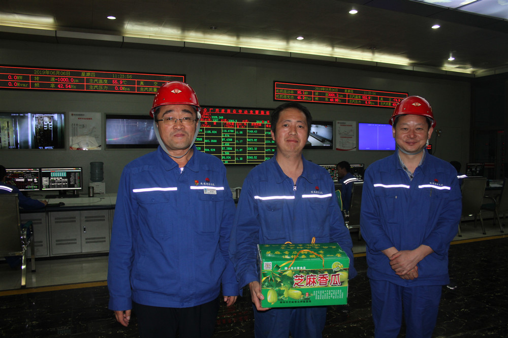 随后辛总及贺主席前往热电机组集控室为坚守岗位的一线职工发放了芝麻香瓜,把清凉送到了一线,把关怀送到职工心坎。
