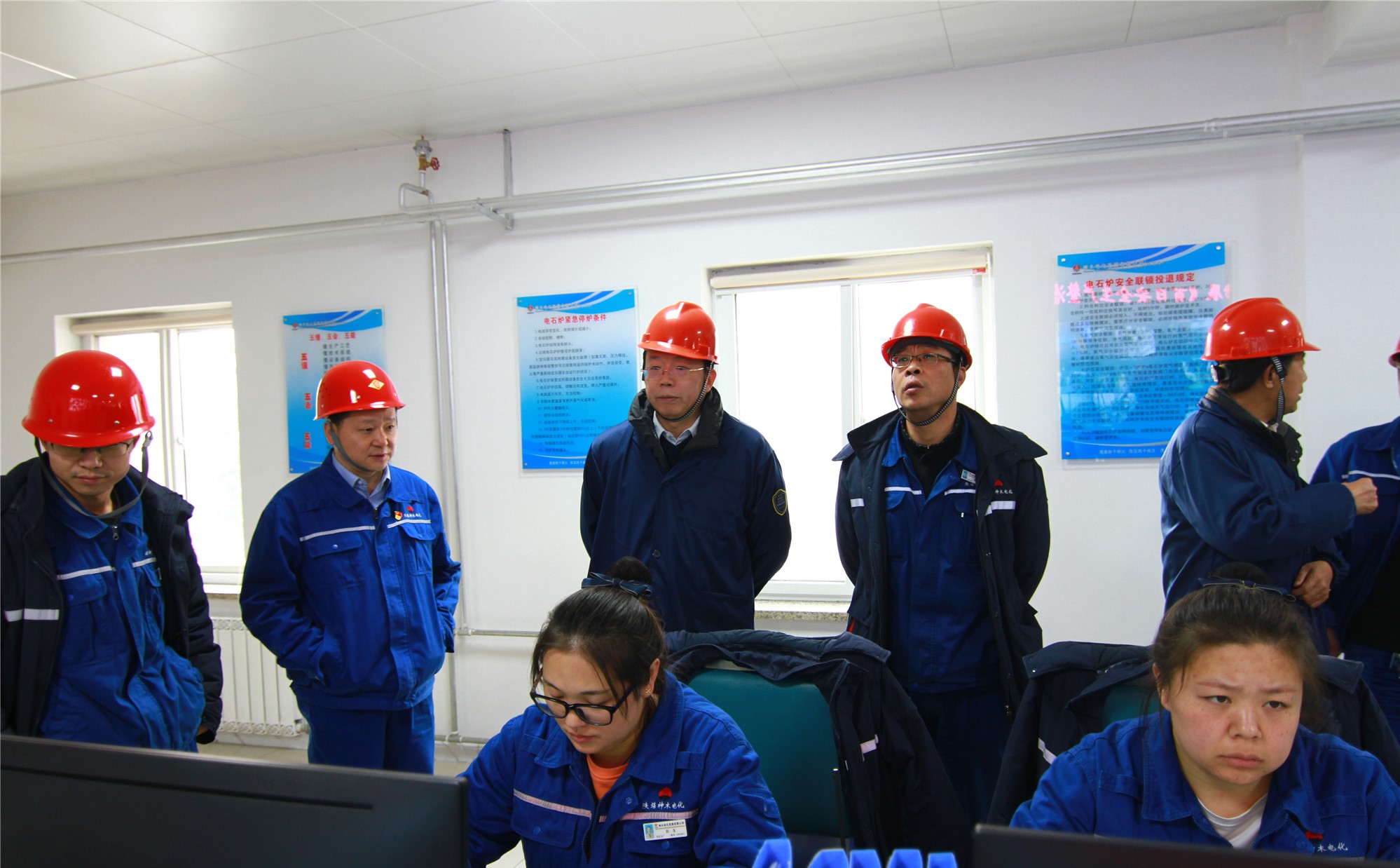 最后,封建利一行还去到电石分厂,视察了电石分厂的中控室和电石交接班室了解了职工的工作环境和新型设备的安装。