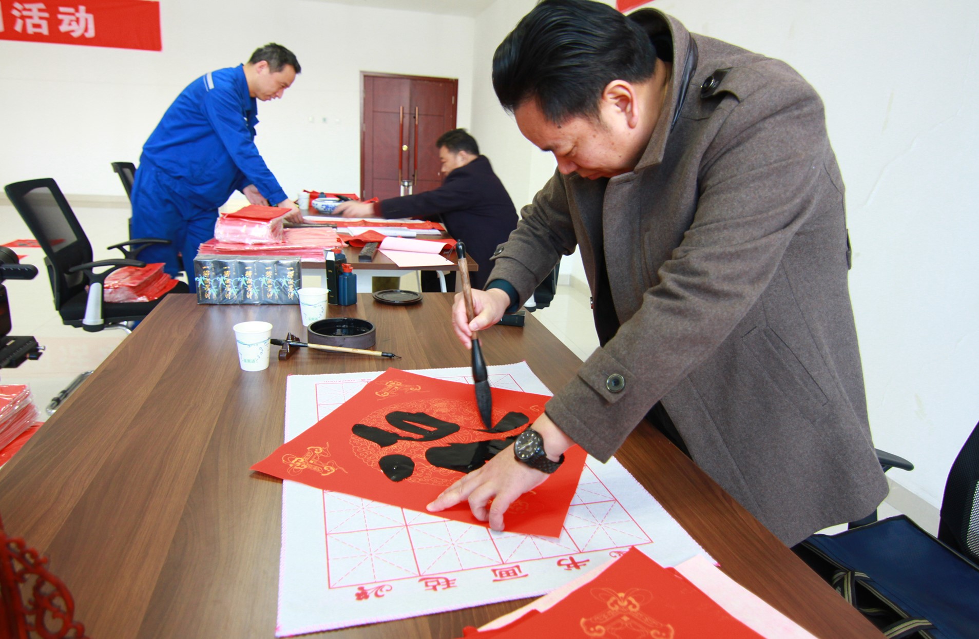 活动现场,人头攒动,墨香四溢。书法家们笔走龙蛇,激情澎湃,将新年的美好祝愿化作一张张寓意吉祥的书法作品。爱好书法的职工们也现场挥毫泼墨,闻讯而来的职工们热情高涨,一时间晾晒的晾晒、评说的评说,好不热闹!一句句温暖人心的祝福语,一副副火红吉祥的春联,一个个大红“福”字,让浓浓的年味扑面而来,构成了一道祥和的年俗文化风景线。