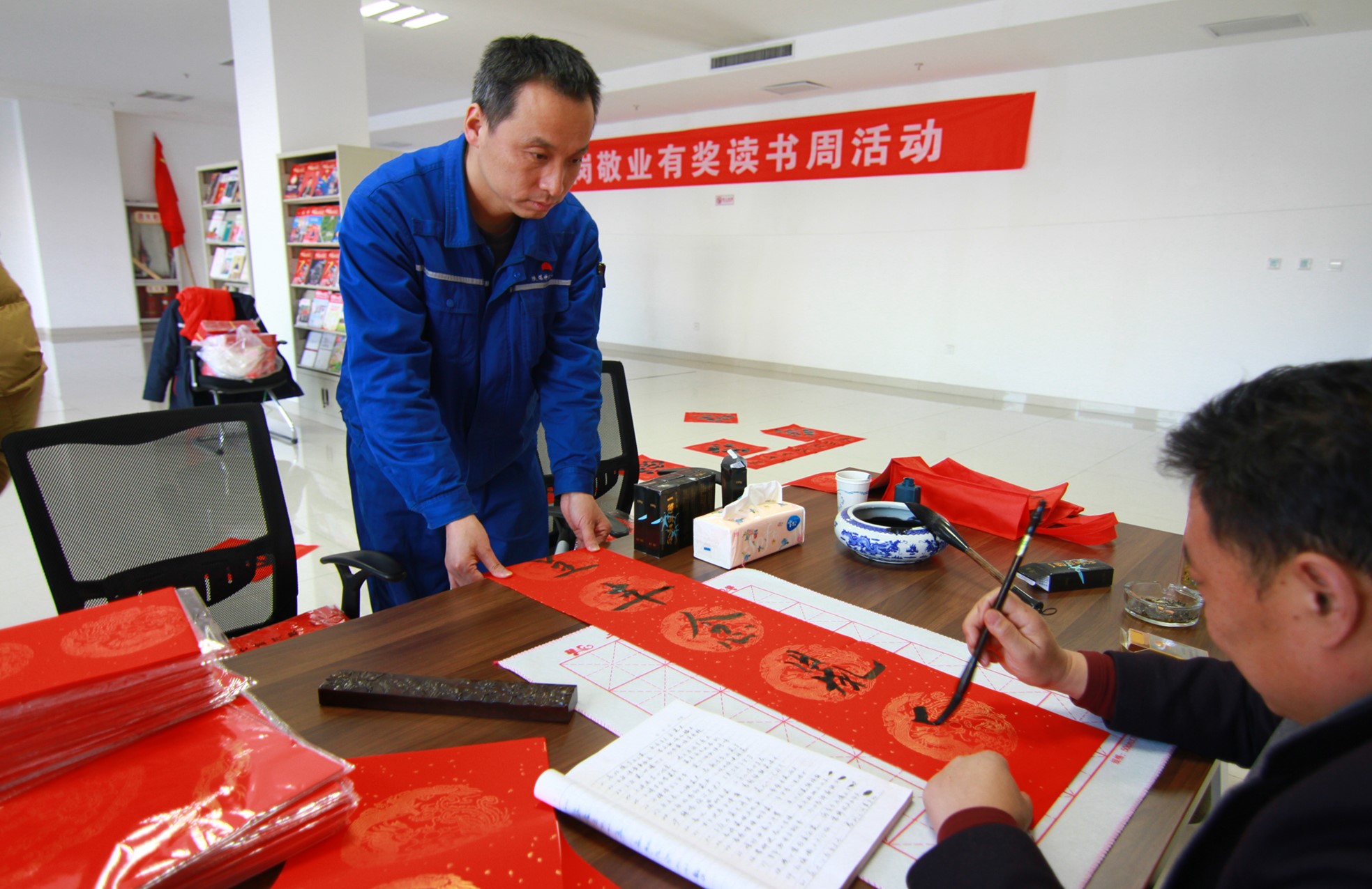 “喜居宝地千年旺,福照家门万事兴”一副副春联都表达了大家对未来的美好憧憬。此次活动不仅弘扬了中华民族的传统书法文化,也进一步的丰富了职工们的精神文化生活,提升了真人华球体育官网的凝聚力,营造了健康向上的文化氛围。“很喜欢老师们写的春联,比印刷的那些更加灵动,蕴含的年味更足,春节前就贴大门上,希望2020年红红火火的!”围观员工说道。(呼嘉咪)