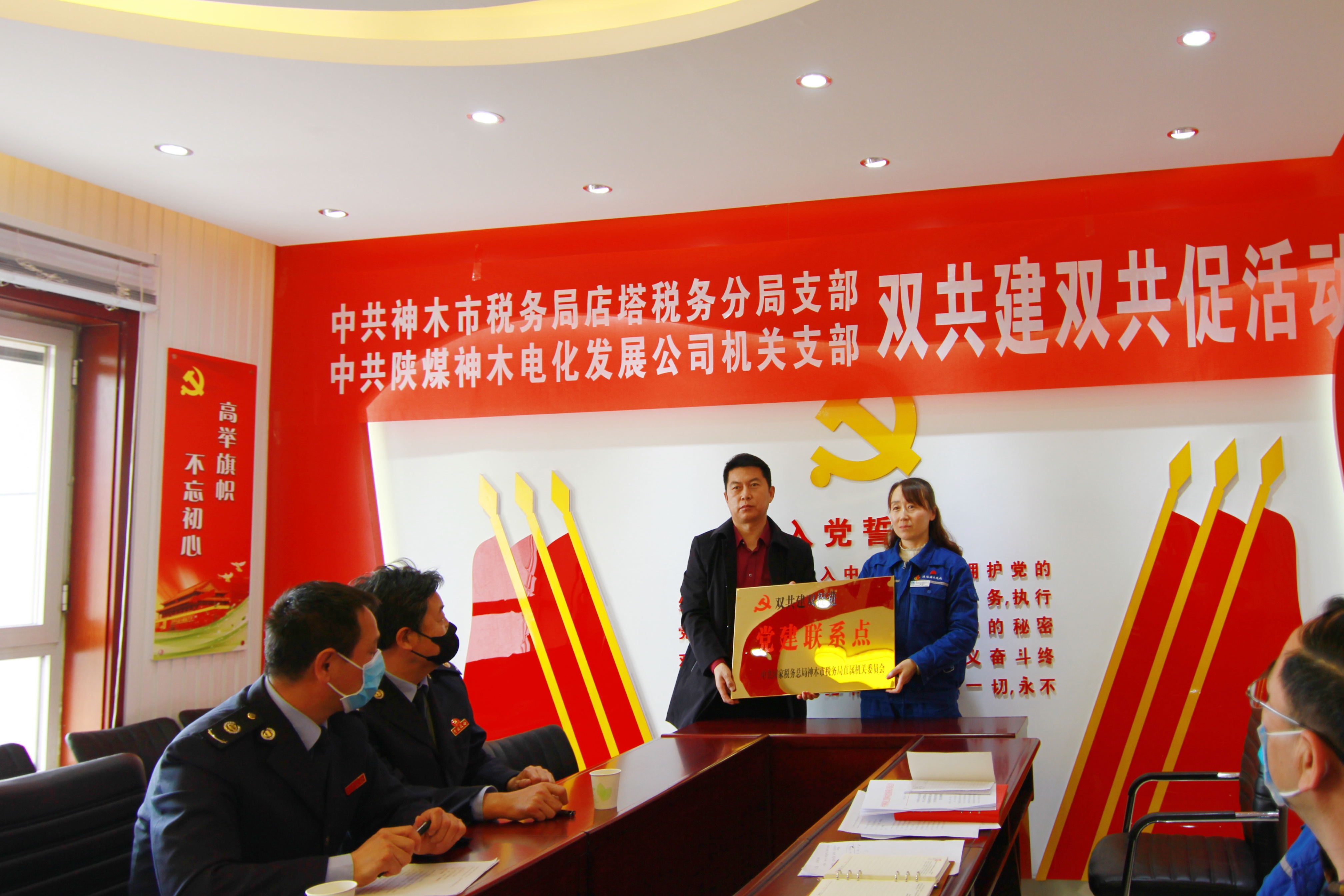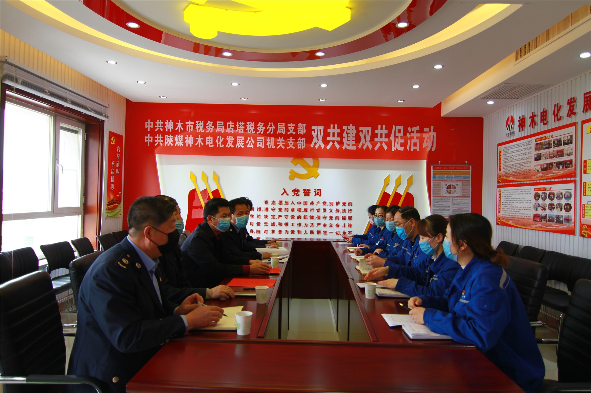 3月26日,神木市税务局店塔分局支部与神木煤化工电化真人华球体育官网机关党支部举行“双共建双共促”党建结对启动仪式,在神木煤化工电化真人华球体育官网办公楼五楼党群活动阵地举行。神木市税务局党委委员、副局长张军,店塔分局支部书记刘维凯,党办主任韩建强,神木煤化工电化真人华球体育官网财务总监陈晓华,党群工作部负责人贺海霞,机关党支部副书记白占争及双方党员代表出席活动。