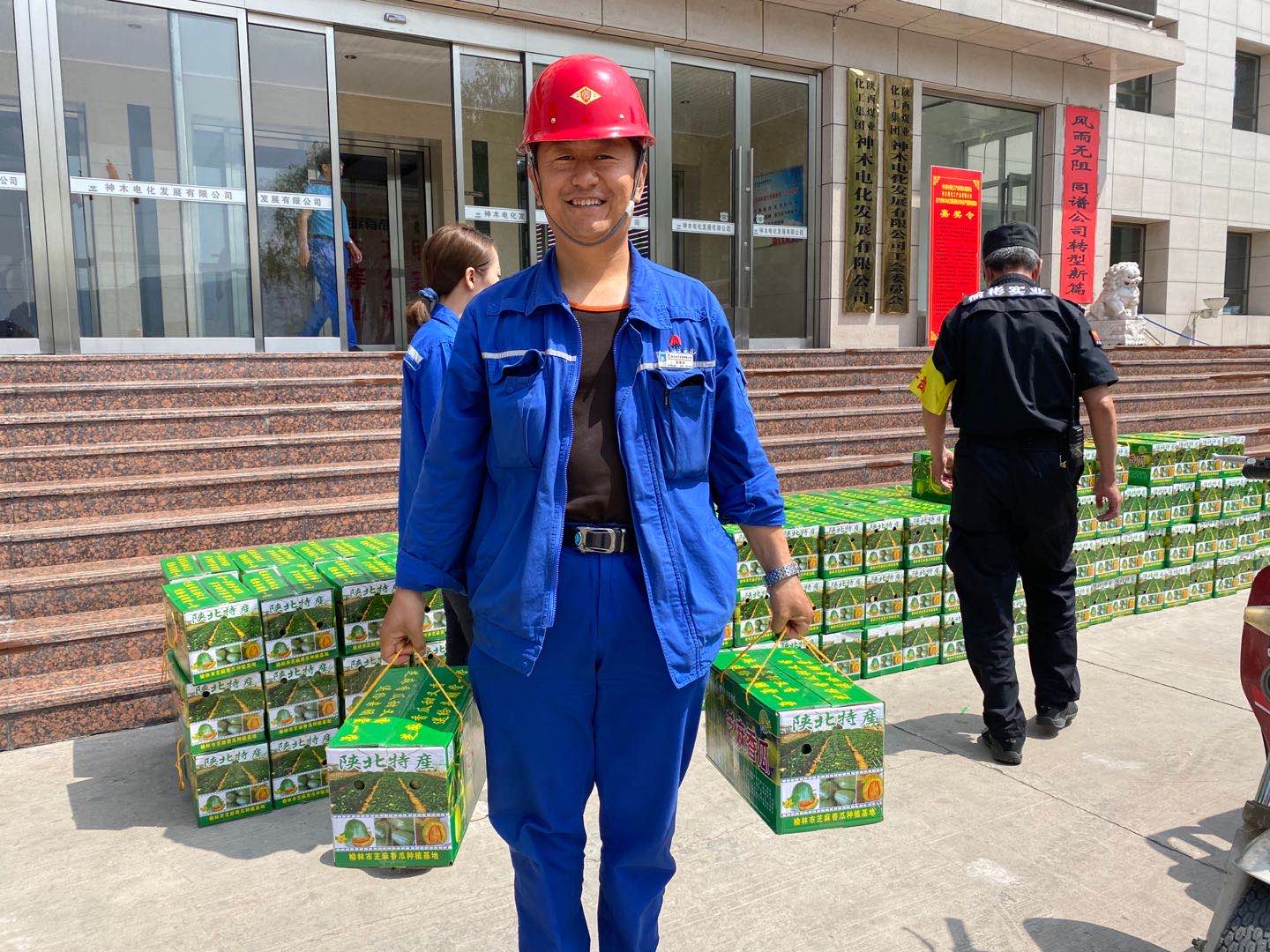 6月9日上午,神木煤化工电化真人华球体育官网工会开展了“夏日送清凉”活动,真人华球体育官网党委副书记、工会主席任建军及工会副主席贺文强在办公楼前为坚守在岗位的全体职工发放了芝麻香瓜共300多箱,让职工感受到“娘家人”的关怀,给这个炎热的夏天增加了一点点甜。