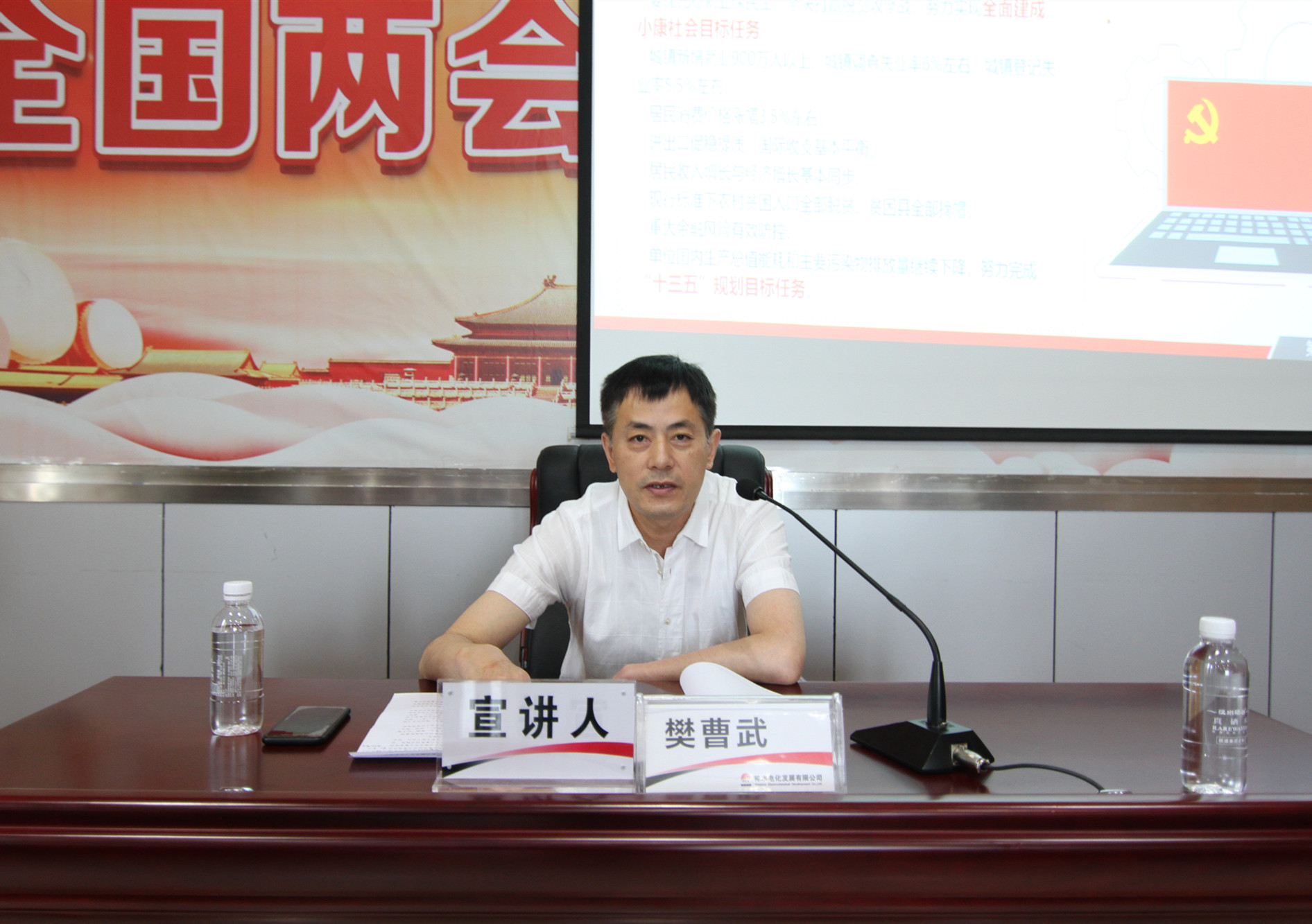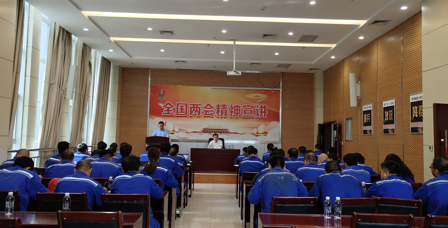 6月24日上午,全国两会精神产业真人华球体育官网宣讲团走进电化真人华球体育官网。产业真人华球体育官网宣讲团成员、真人华球体育官网党委委员、纪委书记樊曹武同志来到神木煤化工电化发展有限真人华球体育官网进行宣讲,60余名干部职工现场聆听。