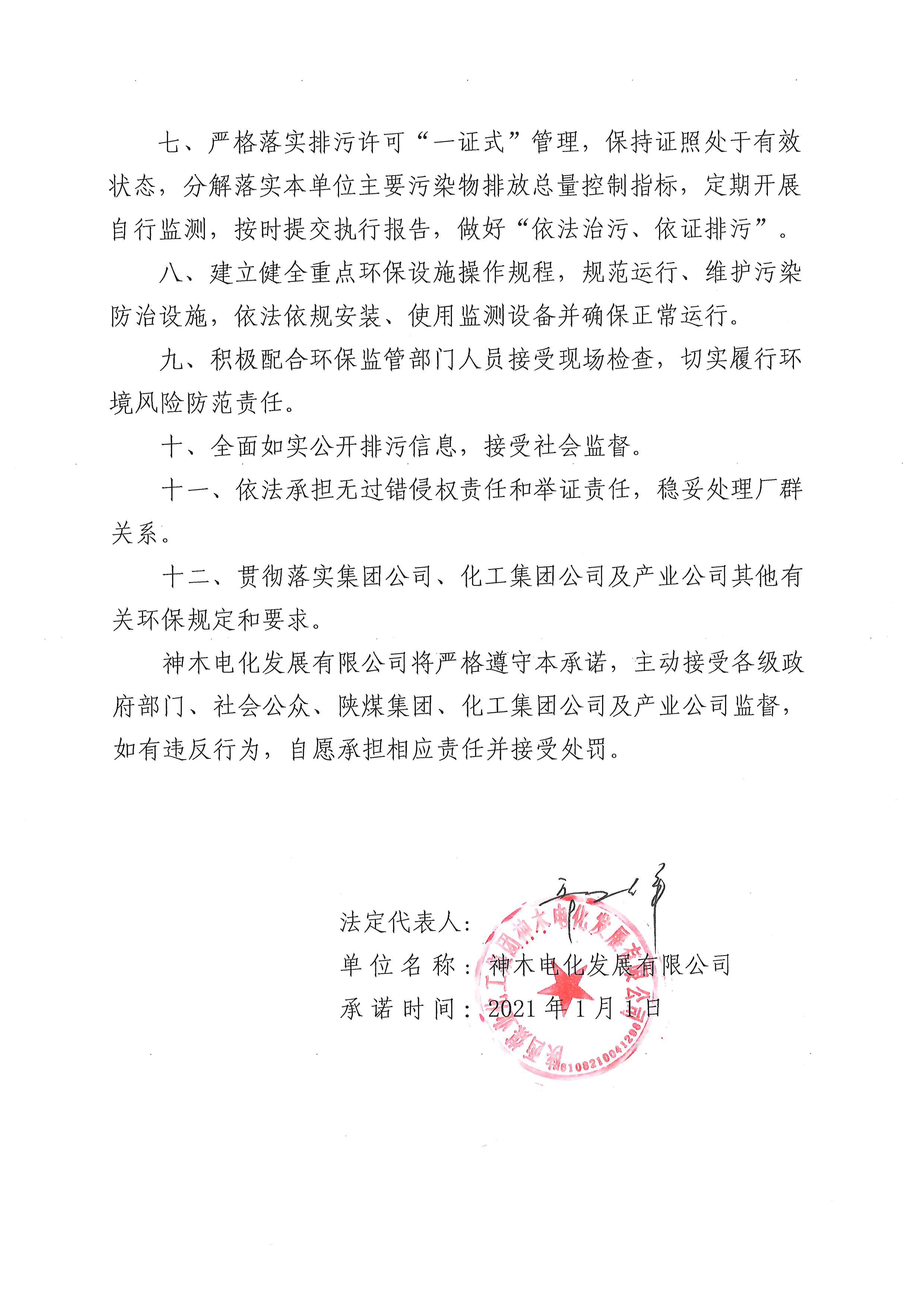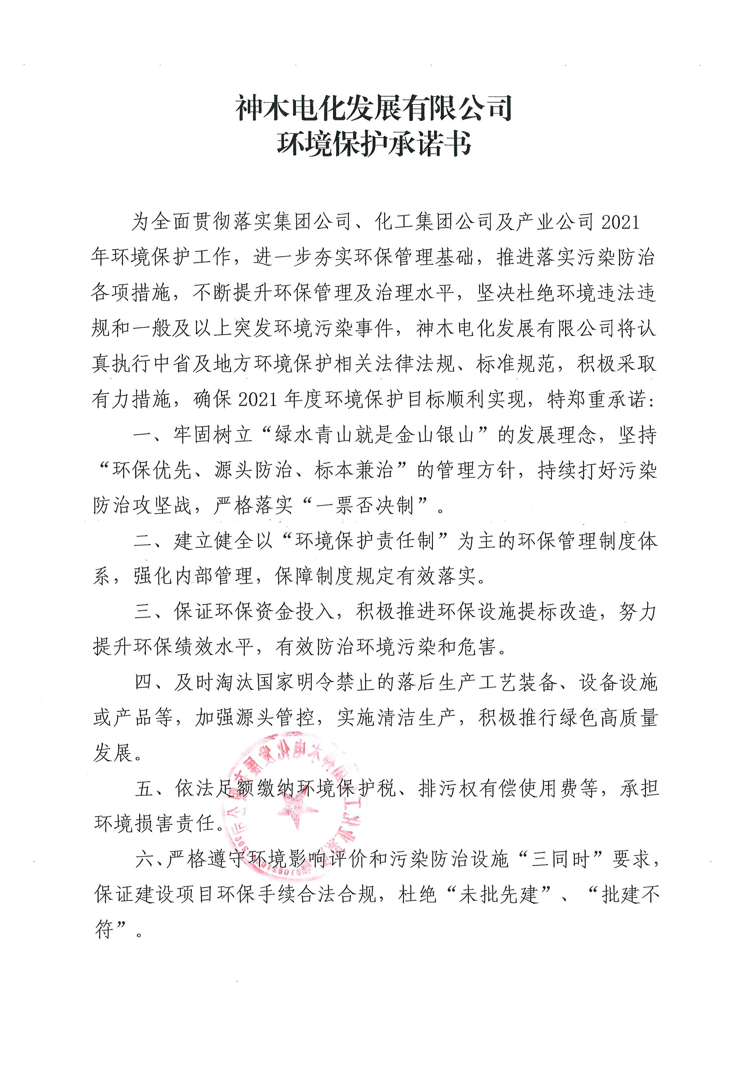 神木电化发展有限真人华球体育官网环境保护承诺书