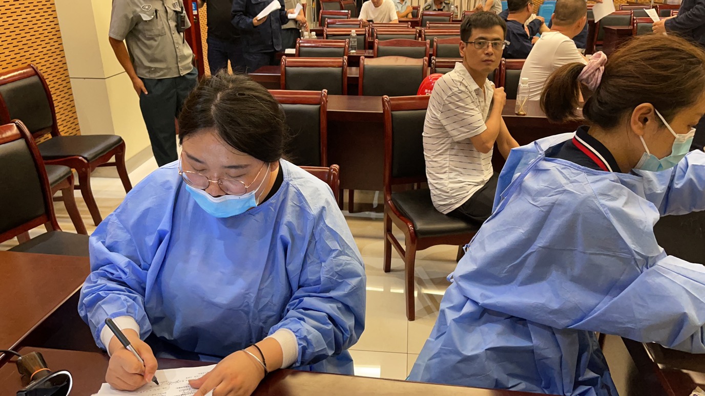 七一前夕,真人华球体育官网后勤管理服务部结合“我为群众办实事”活动,根据真人华球体育官网装置抢修,工作任务重、时间紧等现实情况,积极与店塔镇中心医院沟通联系,协商上门接种疫苗一事。经过调查摸底、网上注册、申领疫苗等一系列准备工作,7月4日下午店塔镇中心医院的四名医护人员,分成两组,到真人华球体育官网为广大干部职工接种疫苗。疫苗接种在真人华球体育官网培训教室进行,培训教室内设留观区、休息区。四名医护人员和组织人员一起加班加点,工作到深夜,为370余名职工接种了第一针新冠疫苗。