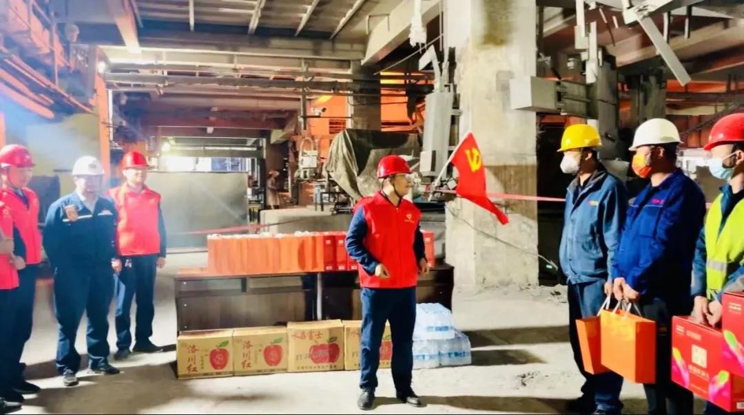 电石党支部书记高鹏等一行人带着慰问品来到5#炉大修现场,将节日的祝福送到参于检修的外委单位及分厂检修人员的手中。并对大家的辛勤付出表示感谢,要求支部党员强化战斗堡垒作用,冲锋在前,将榜样的作用内化于心,外置于行,将领悟成果转化为干事创业的本领担当,鼓励广大职工向优秀的党员看齐,在“打赢检修攻坚战”上下功夫。他强调检修期间尤其要加强现场监管,在各层检修点安排专职监护人员进行安全监督,参建单位要服从分厂安全管理要求,不断织密分厂安全管理网确保检修工作顺利推进。