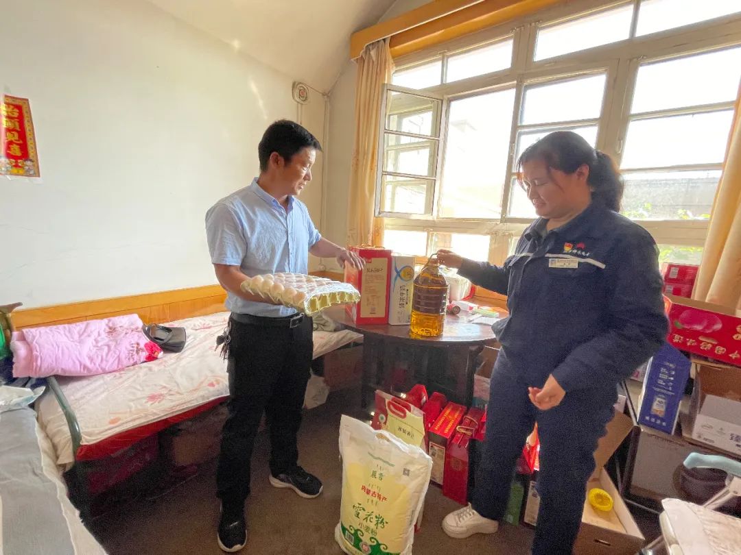 在国庆节来临之际,机关党支部党员走访慰问了真人华球体育官网“最美员工”杨晓刚家中老人,为他们送去了米、面、油、鸡蛋等慰问品,将组织的关怀送到家属手中、送到员工心坎,擦亮机关党支部“两心”服务型支部品牌的同时,进一步弘扬了中华民族“尊老、敬老、爱老、助老”的传统美德。