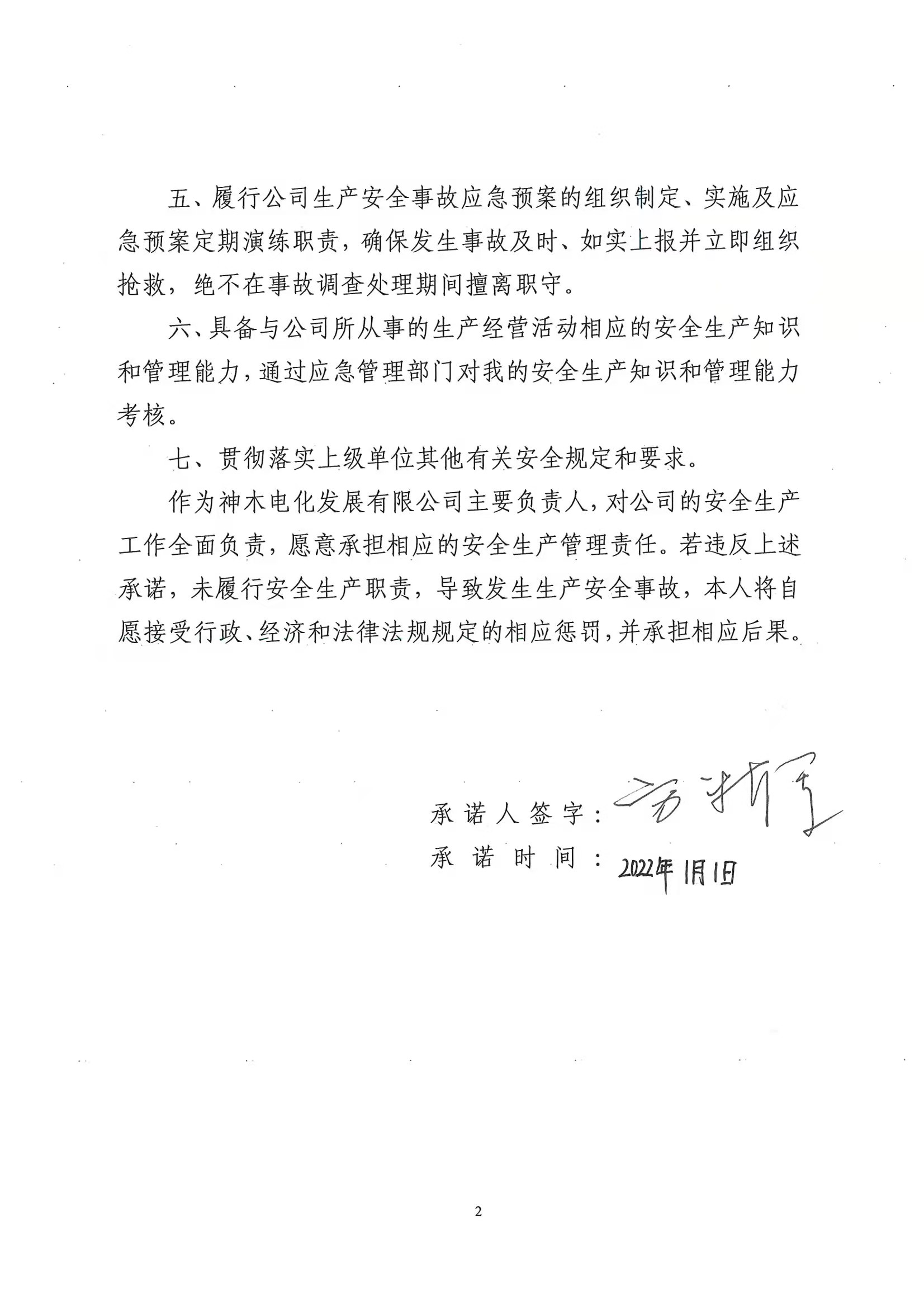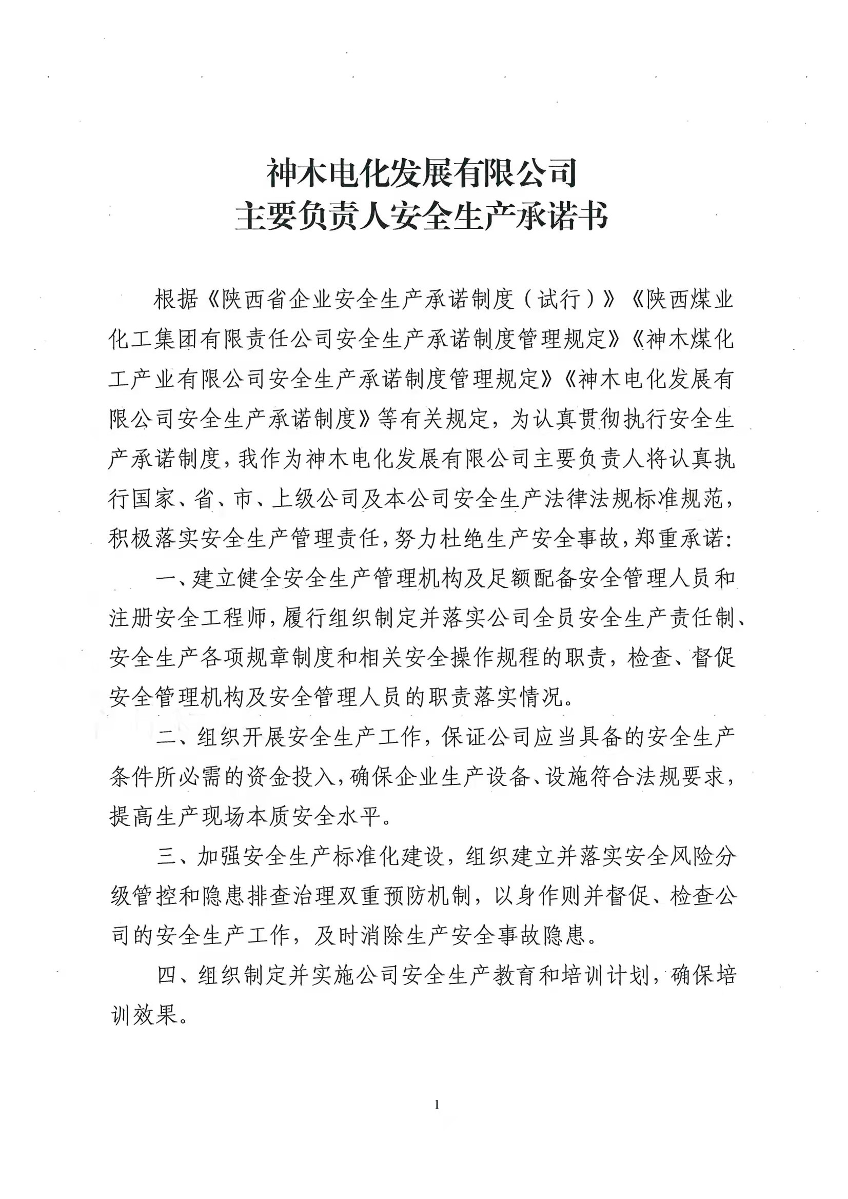 神木电化发展有限真人华球体育官网主要负责人安全生产承诺书