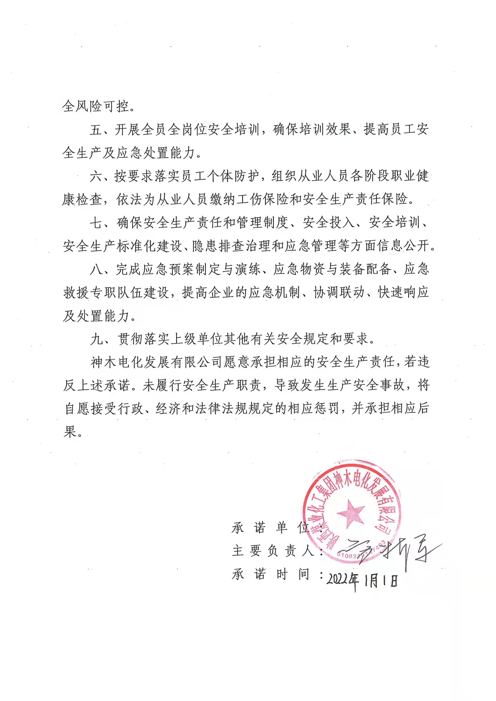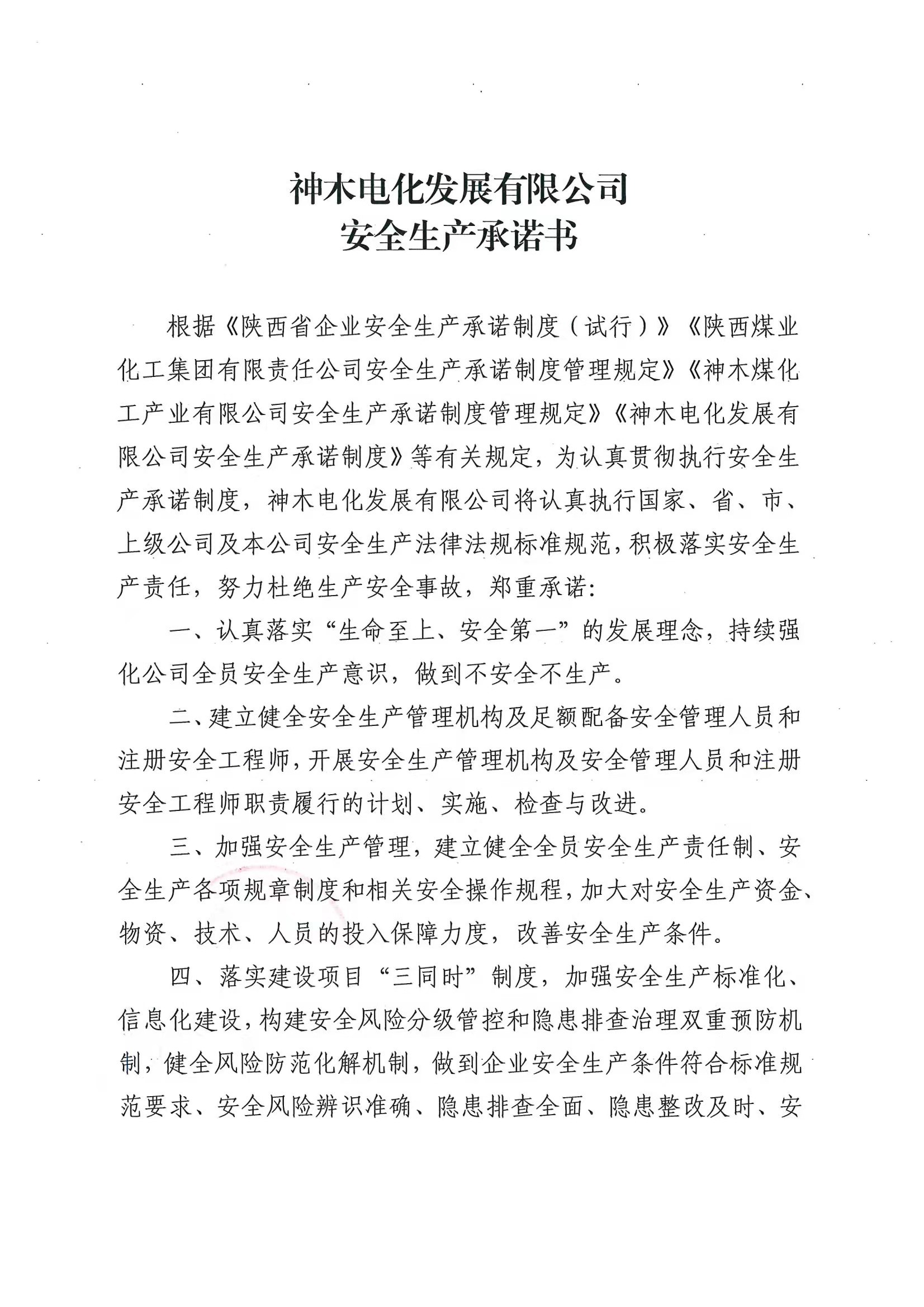 神木电化发展有限真人华球体育官网安全生产承诺书