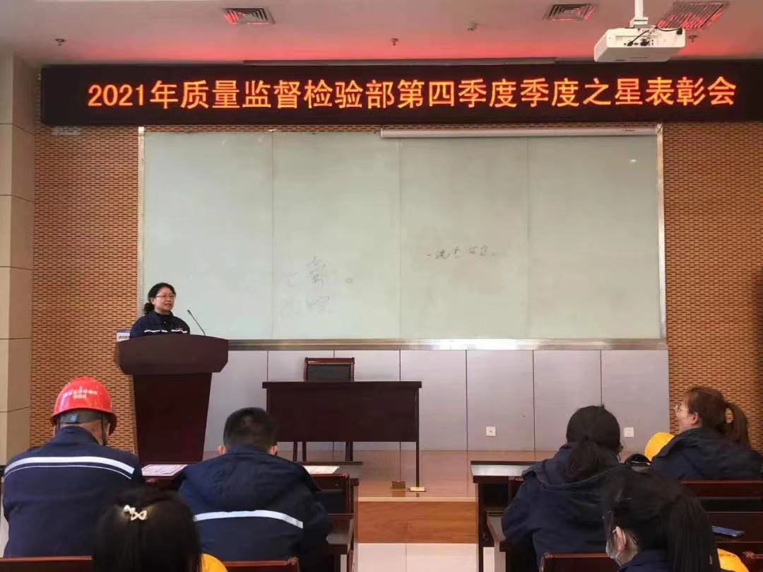 为激励先进,树立模范,营造良好的工作氛围。1月25日质量监督检验部组织召开了“季度之星”表彰会议,以表彰第四季度在安全、环保、积分、勤劳、创新等方面取得优秀成绩的部门员工。