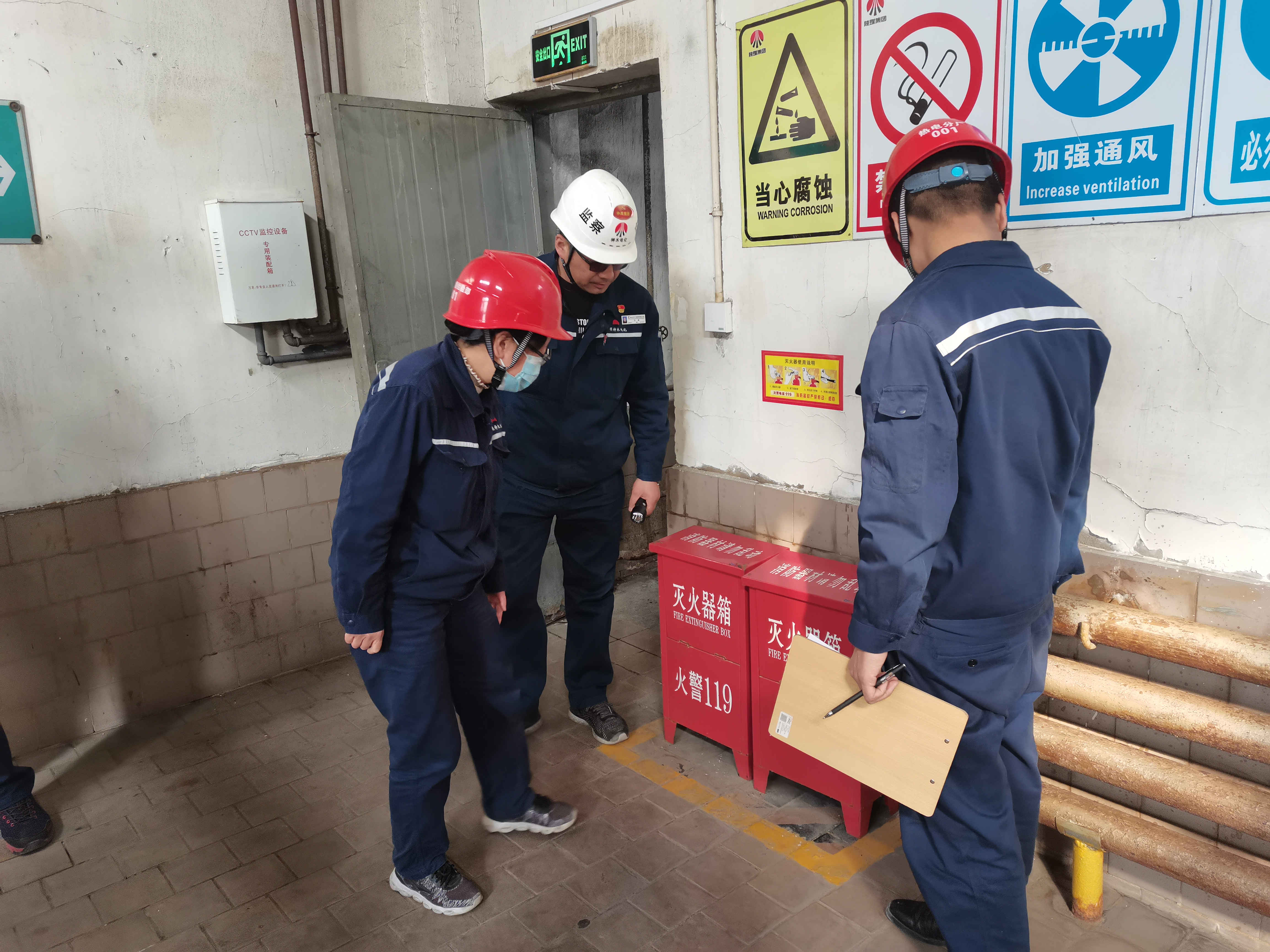 照片8配文:灭火器箱也不放过,箱体有没有被腐蚀?箱体卫生是否保持清洁?箱内灭火器检查是否每月两次记录?