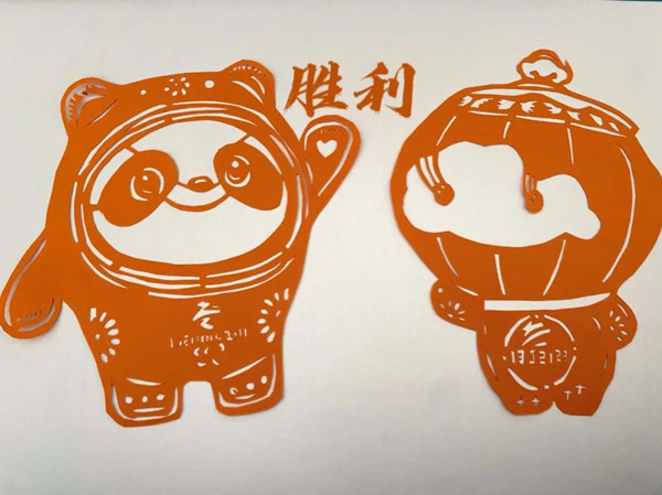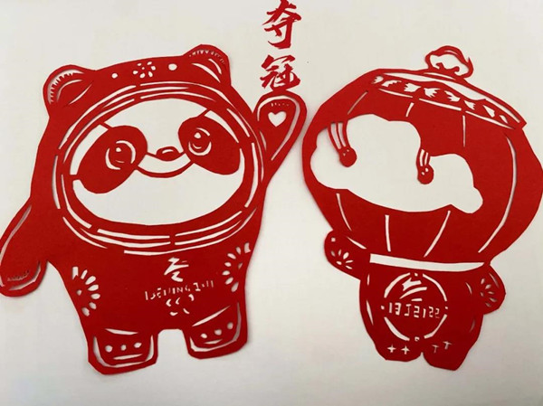 “冰墩墩”“雪融容”等冬奥元素的剪纸,