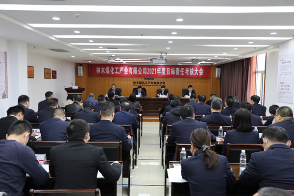2月28日下午,神木煤化工真人华球体育官网召开了2021年度目标责任考核大会。化工集团总经理张立岗,副总经理吉秀峰带领的化工集团相关部门组成的考核组一行对真人华球体育官网2021年度目标责任考核及领导班子成员进行民主测评。会议由吉秀峰主持,神木煤化工真人华球体育官网领导班子成员、各部门负责人、所属单位党政主要负责人以及职工代表参加了会议。