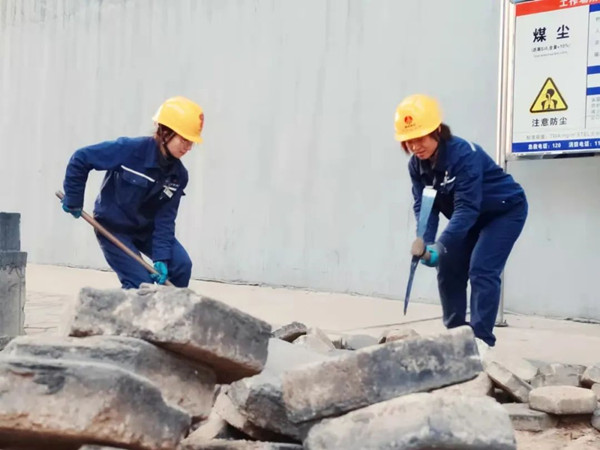 在工作现场,大家热情高涨,干劲十足,只见大家手握铁锹、锄头,男女搭配,分工明确,撬砖、搬砖、平场地、倒运六棱砖,每一道工序都一气呵成,配合默契,呈现出一派热火朝天的劳动场面。挥舞铁锹平场地,银棍铁臂齐摇落,浇筑混凝换新颜,汗水养护创效路。经过三天的忙碌,二煤场南侧场地平整划一,干净敞亮,为下一步浇筑混凝土工作奠定良好基础。
