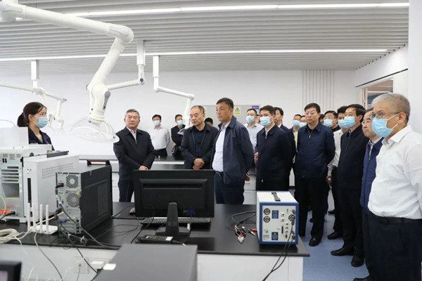 张海涛一行首先来到陕煤技术研究院总部研发基地参观调研。闵小建介绍了技术研究院从可行性调研到示范的全链条科技创新体系布局、以激励为核心的科技创新体制机制建设和以项目为核心的科技产业化高质量发展。张海涛一行还到研究院分析测试中心、新能源所,与一线科研人员进行交流,详细了解新能源产业有关情况。