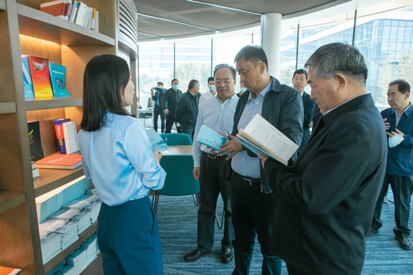 随后,张海涛一行来到陕煤思创学院,在学院工作人员的引导下,先后参观了学院百味书屋、校史文化馆、阶梯教室、研讨室等办学设施,认真听取了思创五年来的办学实践。