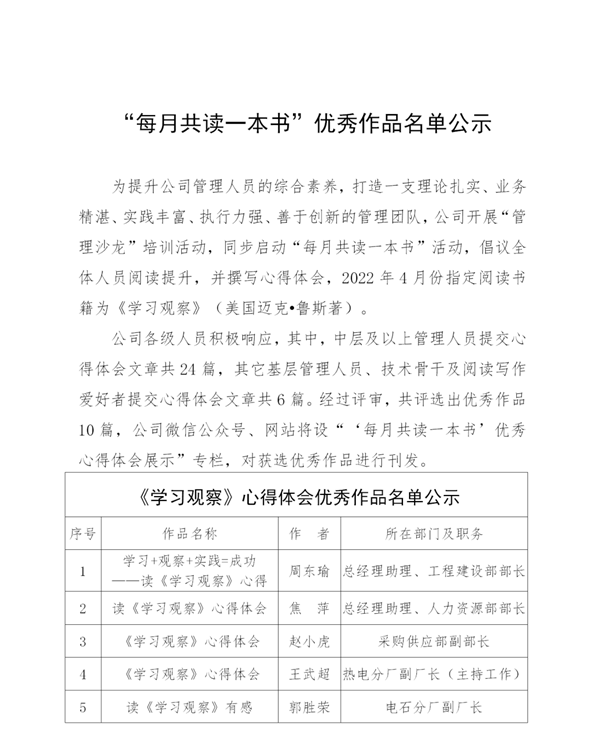 “每月共读一本书”优秀作品名单公示