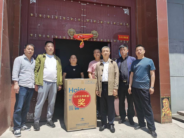 为了推动白堡村家庭、家教、家风建设,弘扬家庭美德、倡导文明新风,5月16日,神木煤化工真人华球体育官网对党五宏等10户“五好文明家庭”进行了表彰,并逐户安装了“五好文明家庭”门牌,发放了奖品。