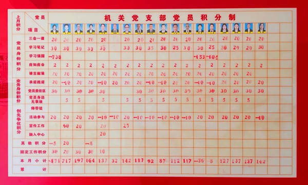 为进一步巩固各党支部标准化建设工作,加快形成“一组织一特色,一支部一品牌”的党建格局,结合“七一”活动,开展党支部标准化典型案例评比活动。其中,机关党支部全面推行党员积分制管理,细化积分明标尺,量化12项相应分值,将党员积分与真人华球体育官网“大”积分兑换与绩效工资挂钩考核,给“灯下黑”打束光等党建品牌脱颖而出。