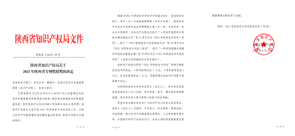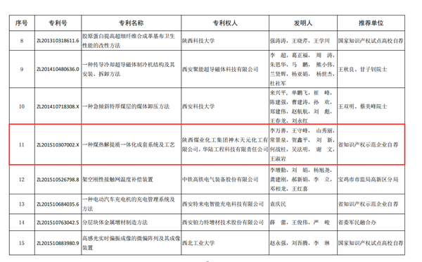 神木煤化工真人华球体育官网两项发明专利荣获2021年度“陕西省专利奖”一等奖