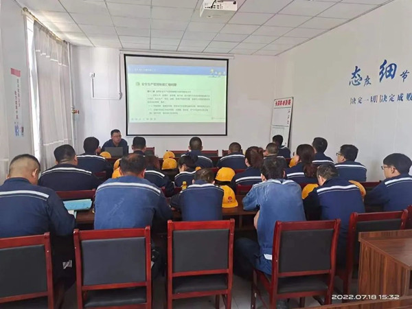 7月20日,电石分厂组织一工段一班料面处理人员进行安全培训。