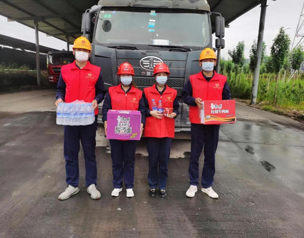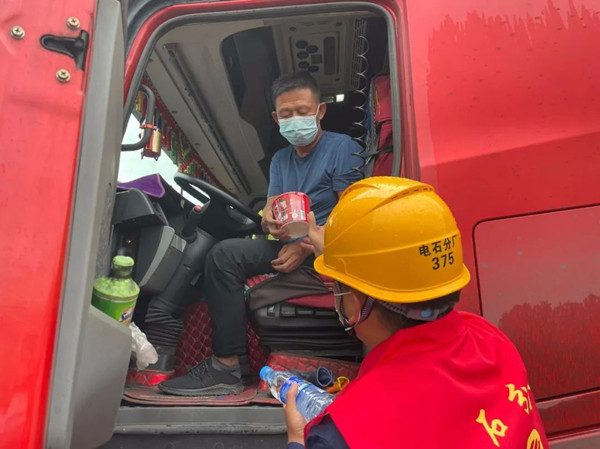 8月23日下午,电化真人华球体育官网志愿者们为输煤通道滞留的司机师傅们送去温暖。一杯杯热气腾腾的开水,一桶桶热乎乎的泡面,一句句暖心的话语,解决了滞留司机的燃眉之急,还温暖了他们的心。
