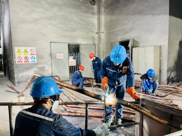 地表温度39℃,前期拆除工作迎来了最热“烤验”。“里面太热了,你们喝点水凉快一下吧”,“没事,从接到抢修指令那一刻开始,我们都已经做好在高温下完成此次检修的准备了”这是服务组与检修组的对话。走近看,检修人员有在拆辅件的、有在放油的、有在接线的。虽干着不同的工作,确有着同样“奋斗的样子!”——手拿各种工具,浑身沾满灰尘、油污与汗渍。他们就是以这样奋斗的样子不停地奔忙穿梭于高温设备之间,只为尽快完成抢修准备工作,30余人经过三天两夜的连续奋战,5#电石炉由检修转为正常运行,明亮的电石之光照亮了电石人前进的路。