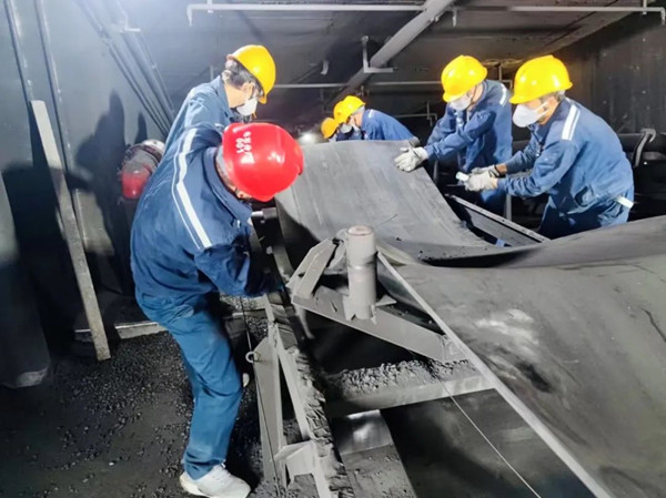 “一二!一二!”工作现场传来了阵阵号子声,维修工正在将新皮带一端用卡子固定在旧皮带一端,工段技术骨干紧紧拉住旧皮带一端,皮带机带动着新皮带稳稳地向上传送。工作人员听从指挥、统一行动,分厂党员干部积极投身检修,全程参与、监督、指导更换作业,及时协调解决皮带更换过程中发生的各种问题,大家心往一处想,劲儿往一处使,经过十个多小时的紧张作业,J5皮带的安装更换工作顺利完成,经调试,皮带运行稳定,现已顺利投入使用。