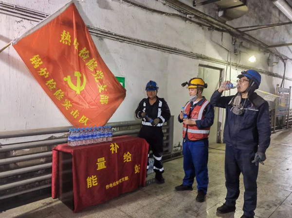 当前,神木煤化工电化真人华球体育官网热电装置大修进入初始阶段,为进一步鼓舞士气,近日,电化真人华球体育官网热电检修党支部、热电运行党支部在汽机9米平台、锅炉9米平台处设立了“能量供给站”,为检修一线职工供应矿泉水、葡萄糖等补给品。