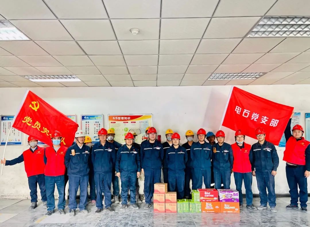 近日,电石党支部组建“党员突击队”,开展“鼓干劲、助检修、保安全”慰问活动,将真人华球体育官网党委和工会的关爱传递到每一位检修人员的心上,为一线检修人员鼓劲加油。