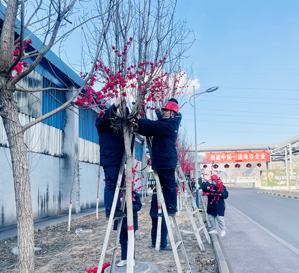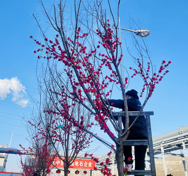 为美化厂区环境,1月4日下午,电石党支部组织支部党员开展了“桃花满枝头 快乐迎新年”主题党日活动,支部所有在岗党员参加。