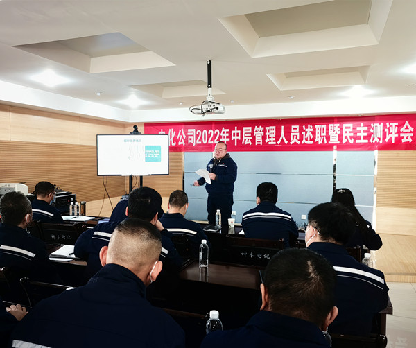奔赴年终收官的“考场”,晒出履职尽责的“答卷”。为进一步加强中层干部队伍建设,强化履职能力,近日,电化真人华球体育官网召开2022年度中层管理人员述职暨民主测评会。真人华球体育官网党委书记、董事长、总经理方新军,真人华球体育官网领导班子成员,中层管理人员及各部室、分厂职工代表等40余人参加会议。