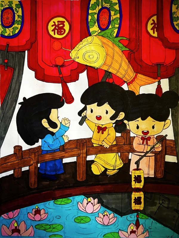 元宵佳节,十里长街灯光辉煌,人声鼎沸,栩栩如生的金鱼灯,形象逼真的荷花灯,做工精细,美不胜收。