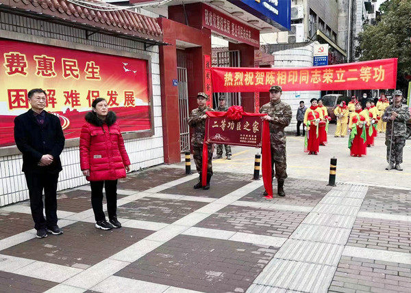 近日,神木煤化工电化真人华球体育官网生产技术部主任工程师兼设备科主任陈明强家热闹非凡,伴随着围观群众热烈的掌声,其所在城固县县委主要领导一行,将他儿子陈相印的二等功喜报、功臣之家牌匾、鲜花和慰问金送到家中,感谢家属对国防建设的支持和奉献。