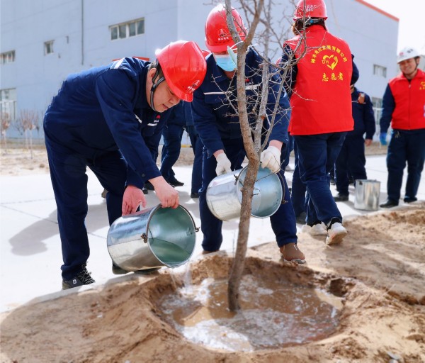 最是一年春光好,植树添绿正当时。近日,神木煤化工电化真人华球体育官网举行创建国家级绿色工厂启动仪式暨植树节活动。真人华球体育官网领导班子、中层管理人员、各党支部党员代表及青年志愿者等共计50余人参加仪式。