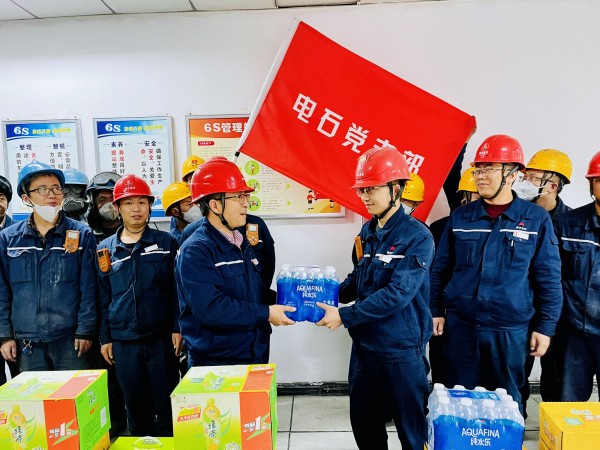 近日,电化真人华球体育官网电石党支部在大修期间开展了“鼓干劲、助检修、保安全”慰问活动,将真人华球体育官网党委和工会的关爱传递到每一位检修人员的心上,为一线检修人员鼓劲加油。