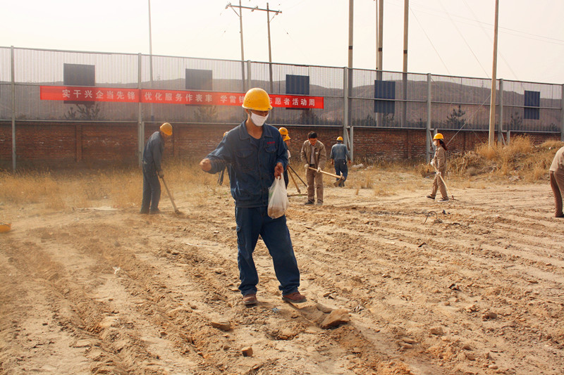 在种草现场,大家干劲十足,谈笑风生,分工协作,有的翻地,有的播撒草籽,有的填土,密切配合,每一道工序都一丝不苟。大家都不怕脏、不怕累,真正体现出“实干兴企当先锋 优化服务作表率”的精气神,经过3天的劳动,各部门的志愿者在10000多平方米空地上完成播种工作,共播撒草种20余斤。