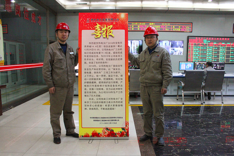 12月29日下午,真人华球体育官网副总经理张德亮及工会副主席贺文强代表党政工为热电分厂送去喜报。祝贺热电分厂提前完成发电量14.4亿度!对热电分厂全体员工付出的辛勤努力表示热烈的祝贺和衷心的感谢!希望大家振奋精神、再接再厉,不断追赶超越!